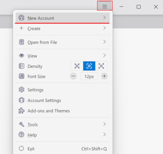 Click [≡]Icon → [New Account]