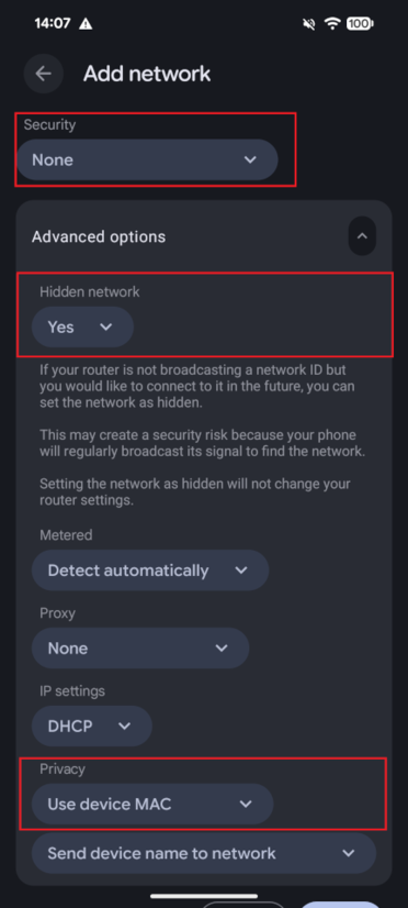 [Privacy]: Select [Use device MAC]