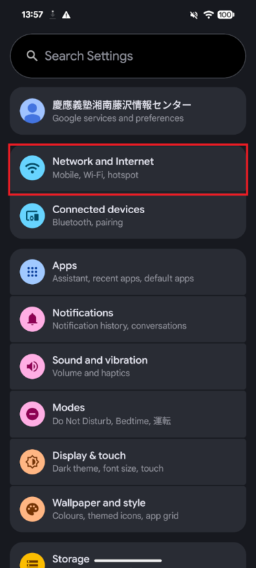On the [Settings] screen, tap [Network and internet].