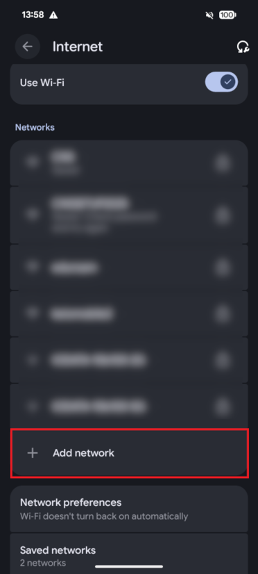 Scroll to the bottom of the [Internet] screen and tap [Add network].