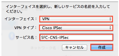 画面左の[VPN]をクリックし、前述で作成した設定を有効にします