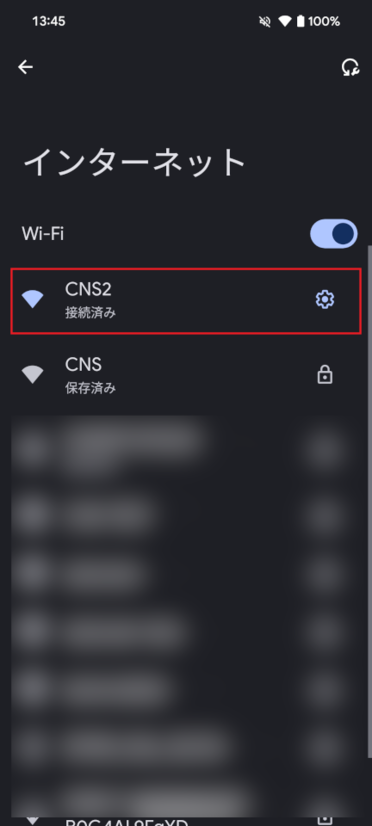 「CNS2」をタップして、数十秒程経った後に「CNS2」下部に「接続済み」と表示されたら設定完了です
