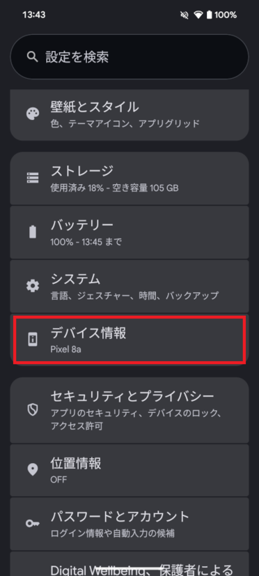 MACアドレスの確認方法(Pixel 8a)